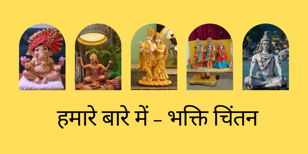हमारा मुख्य उद्देश्य है – धार्मिक और आध्यात्मिक ज्ञान को सरल, सुलभ और विश्वसनीय रूप में हर व्यक्ति तक पहुँचाना।आज के समय में इंटरनेट पर ढेर सारी जानकारी मिलती है, लेकिन हर जगह वह प्रामाणिक और भरोसेमंद नहीं होती। भक्ति चिंतन पर हम आपको वेद, पुराण, उपनिषद, रामायण, महाभारत, गीता और अन्य धार्मिक ग्रंथों से जुड़ी प्रामाणिक सामग्री प्रदान करते हैं।यहाँ आप पाएँगे